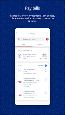 Bank conveniently and securely with the Bank of America® Mobile Banking app for U.S.-based checking, savings, credit card, loan and investment accounts.