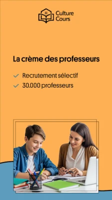 Apprenez avec des professeurs qualifiés partout en France grùce à une application simple et intuitive. Culture Cours facilite la mise en relation entre élÚves, parents et enseignants pour organiser un accompagnement scolaire adapté.