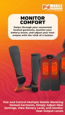 Mobile Warming® by Fieldsheer® specializes in heated garments including jackets, vests, base layers, socks, gloves and head gear. The next generation MW Connect App™ provides easy wireless connect and control using Bluetooth®, especially convenient on hard -to-reach items like socks and base layers. Pair multiple garments, control temperature, and custom name for easy identification right from your Android mobile device or Wear OS watch. You’ll even receive real time battery level updates and can register new products all through the MW Connect App. Stay Warm, Stay Comfortable, Stay Connected. Mobile Warming.