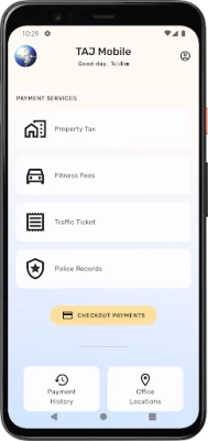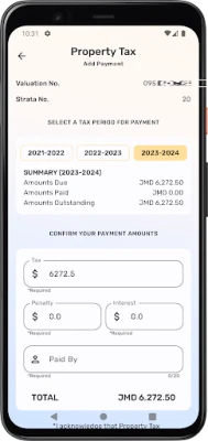 • Search for Property details by Valuation No. & Strata No. • Pay your Property Taxes, Fitness Fees, Traffic Tickets and Police Records. • View payment history. • Regenerate Statement of Payments. • Locate the Tax Office closest to you. • Access the mobile app with existing TAJ Portal credentials.
